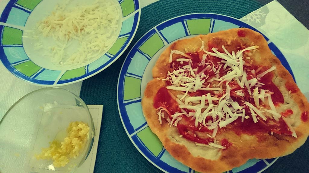 Tentokrát sme to síce s cestom menej odhadli (vymiesili viac, ako sme boli schopní skonzumovať), ale pre nás predsa nie je problém vybrať cesto na langoše z chladničky aj uprostred týždňa. 🙂